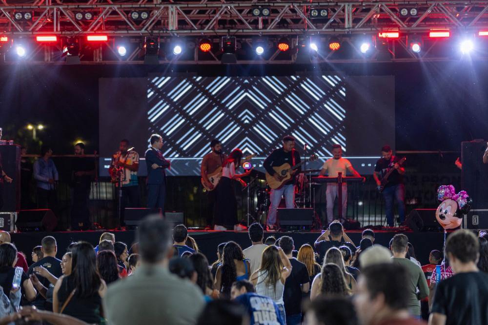 SEGUNDA NOITE DO DIA DO EVANGÉLICO REÚNE PÚBLICO COM SHOWS E CELEBRAÇÃO EM FRENTE À RODOVIÁRIA